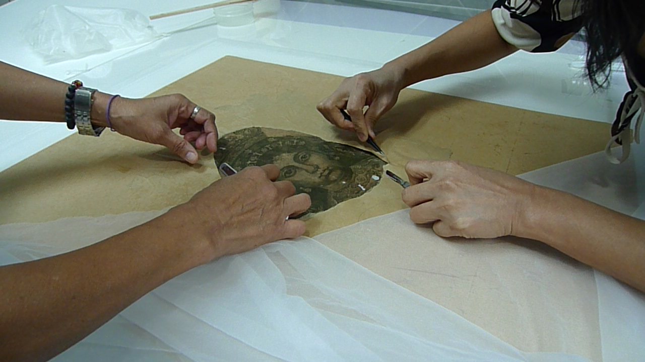 Our treatment services include removal of old repairs and tapes, surface cleaning, mending paper tears, foxing and stain reduction, reduction of creases, chemical cleaning to remove dirt and wash harmful acids, fumigation, and partial and full restoration.