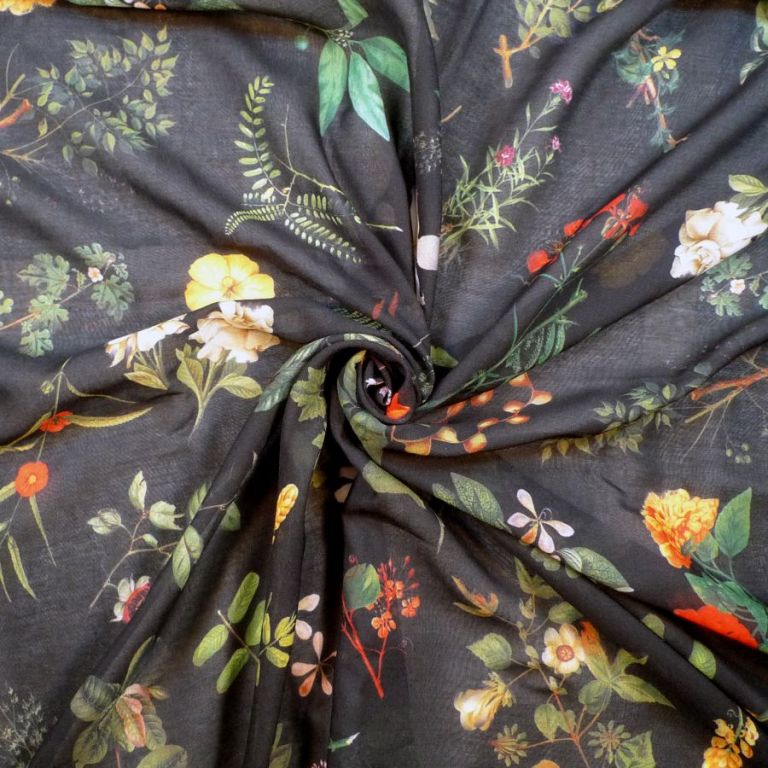 Scarf - Flora (Black) Small Print