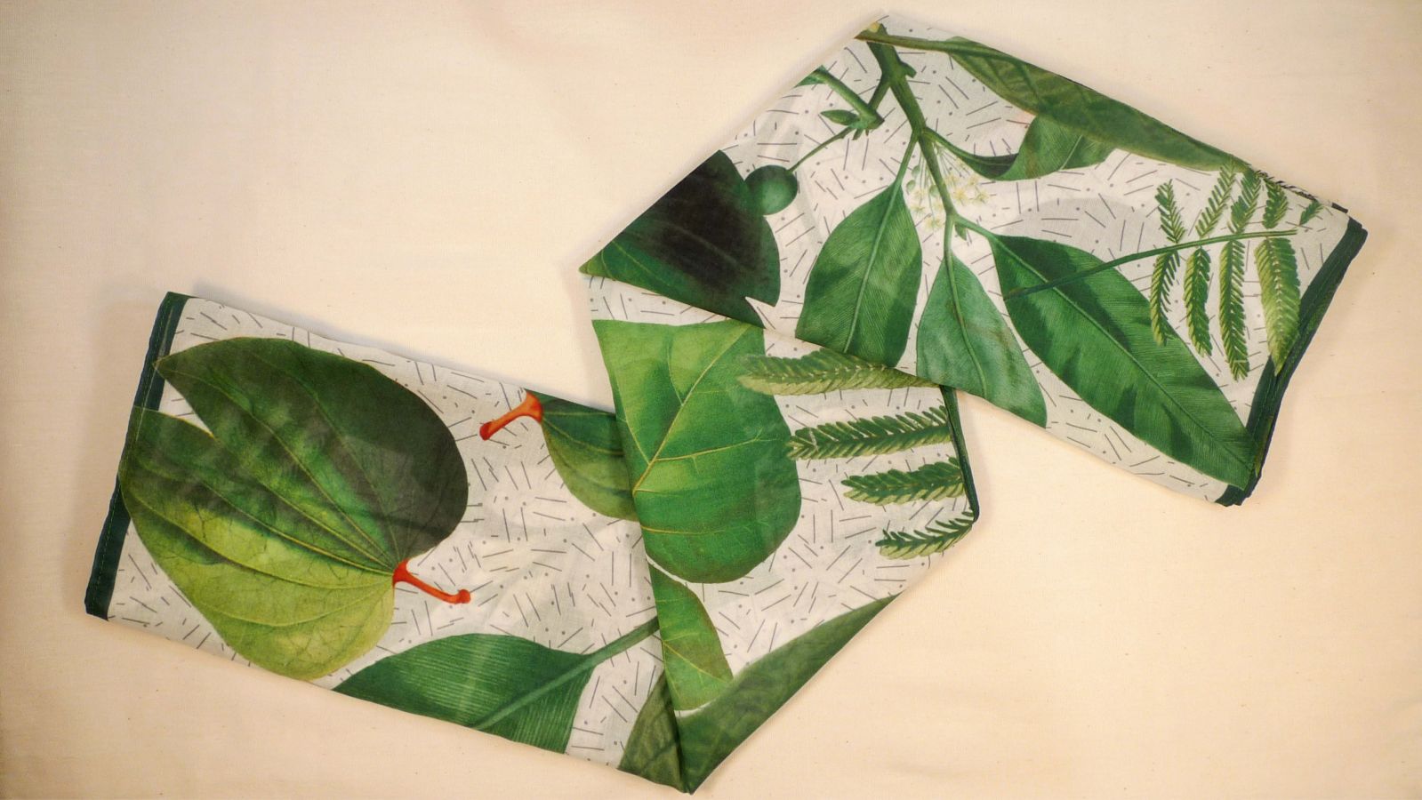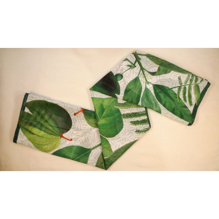 The images used to design this scarf are reproductions of some leaves illustrations from the botanical book "Flora de Filipinas". It is a documentation of hundreds of Philippine plant species printed in 1837, found in our library collections.