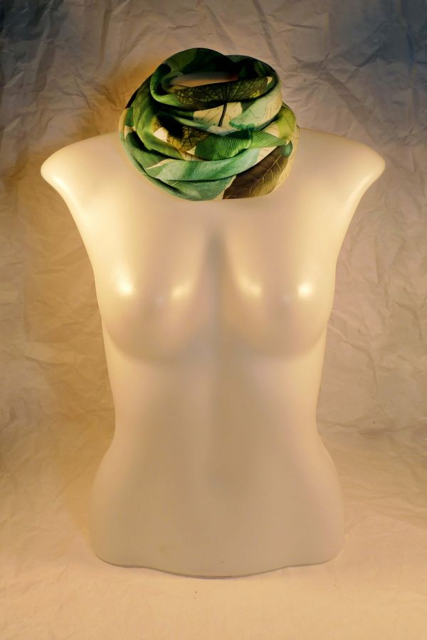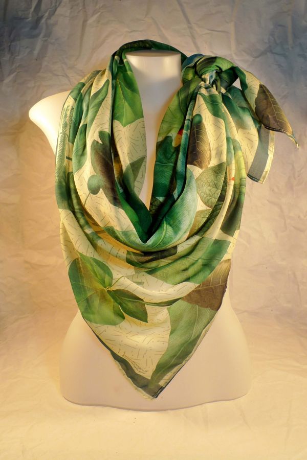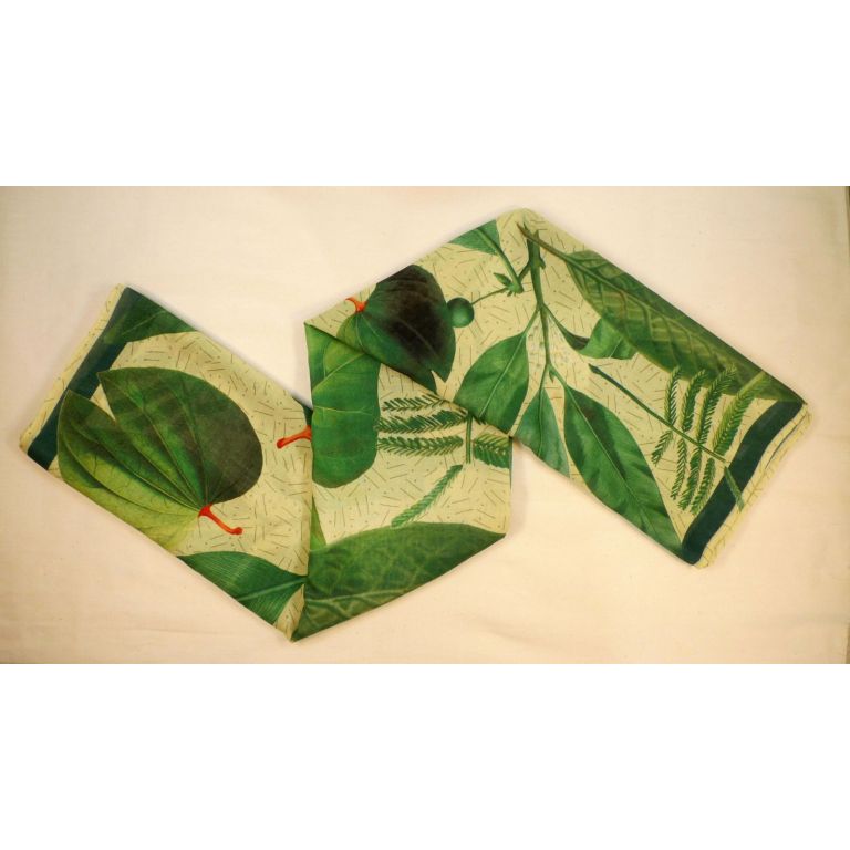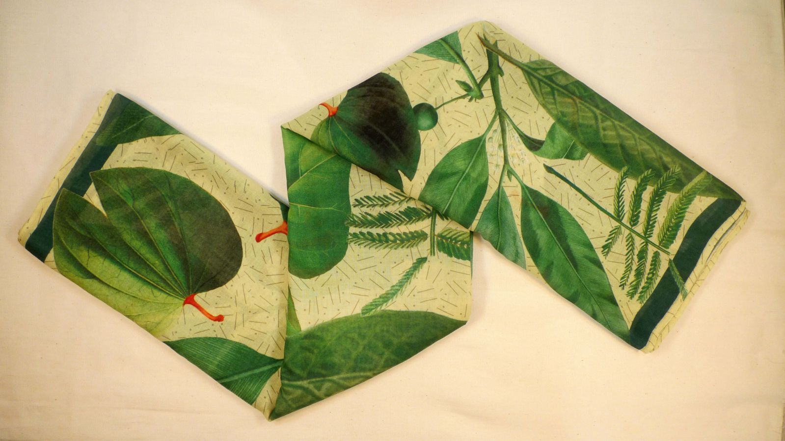 The images used to design this scarf are reproductions of some leaves illustrations from the botanical book "Flora de Filipinas". It is a documentation of hundreds of Philippine plant species printed in 1837, found in our library collections.