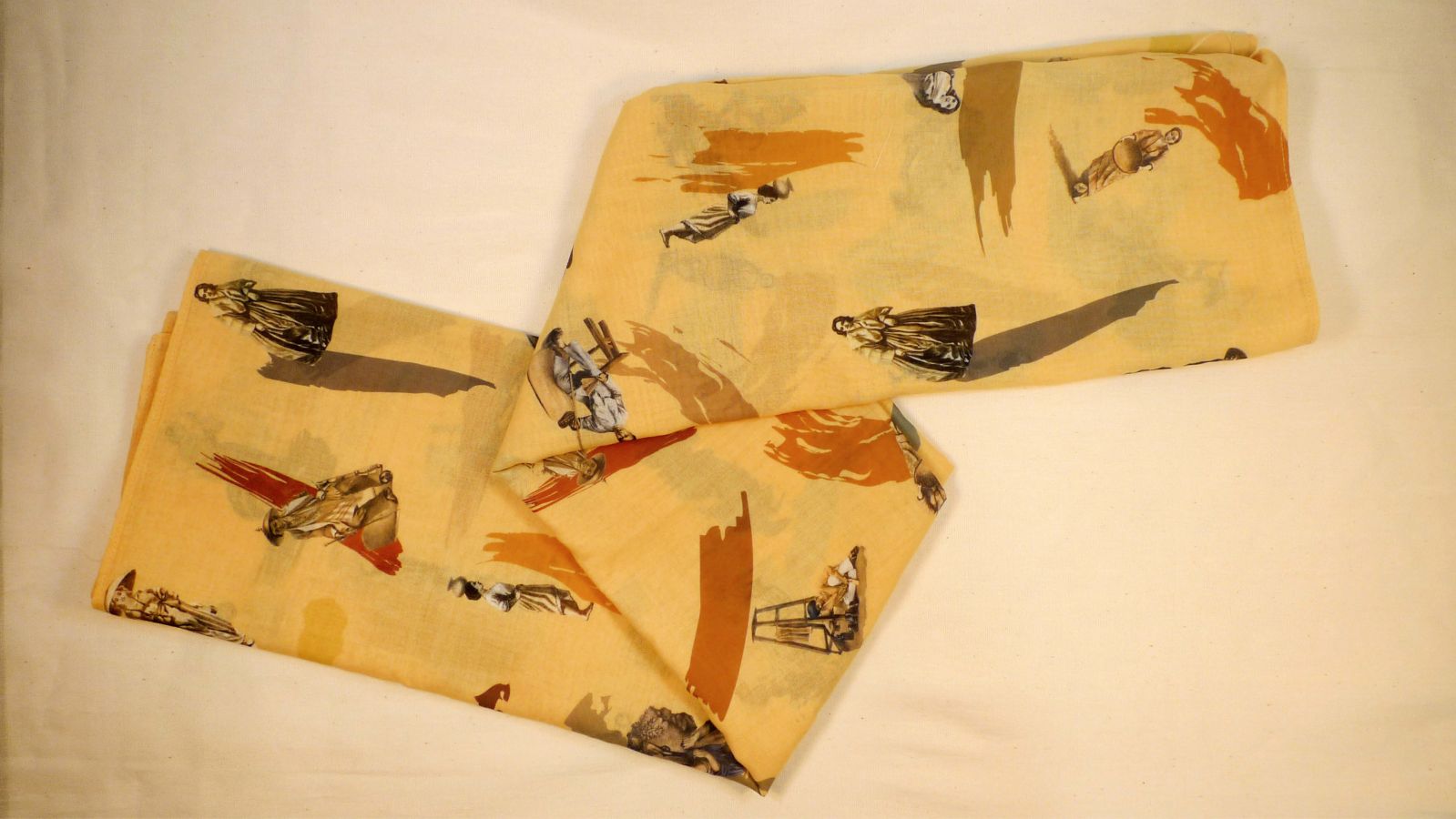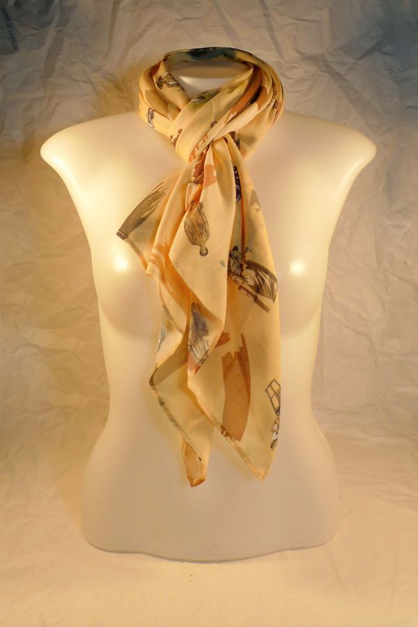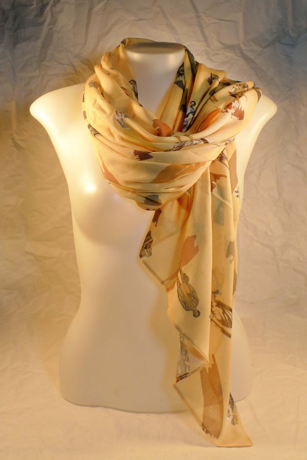 Images used to design this scarf are reproductions from the Ilustración Filipina 1859-1860, a bi-monthly publication of the 19th century, found in the collections of the Ortigas Foundation Library added with creative brush strokes to match any outfit color. Available in 2 colors: Yellow and Light Moss Green.